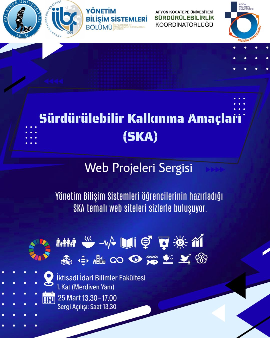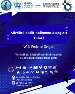 İktisadi İdari Bİlimler Fakültemiz Yönetim Bilişim Sistemleri Bölümü öğrencilerinin Sürdürülerbilir Kalkınma Amaçlarına yönelik farkındalık proje sergisi koordinatörlüğümüzün işbirliğinde gerçekleşecektir.