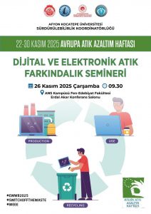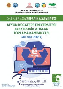 Afyon Kocatepe Üniversitesi Sürdürülebilirlik Koordinatörlüğü; 2025 Avrupa Atık Azaltım Haftası (EWWR 2025) kapsamında gerçekleştirdiği dijital atık toplama kampanyası, kapsamlı farkındalık semineri, atıkların sanata dönüştüğü ileri dönüşüm sergisi ve “Email Sil, Karbon Ayak İzini Azalt” mottosuyla yürütülen dijital temizlik seferberliği etkinlikleriyle kampüs genelinde bütüncül bir çevre hareketi başlattı.
